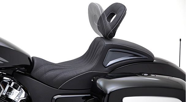 Designed specifically for the Indian Challenger, Pursuit and Powerplus models, the Gunslinger converts comfort into a whole new level of support and attitude. With over seventy color and material options, plus interchangeable finishing plates that can be painted or customized, you’ve got everything you need to build a saddle as unique as your ride.
