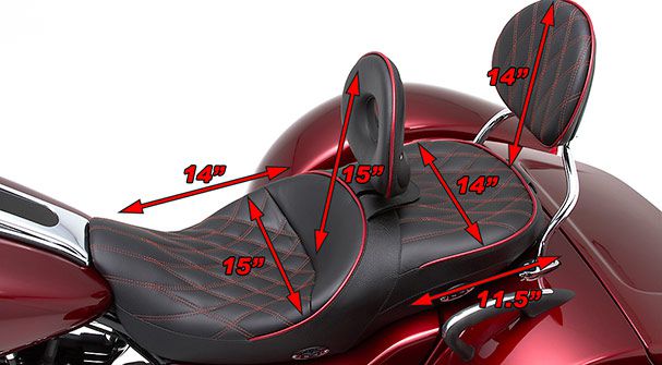 The most generously sculpted seating available! Designed specially to fit the Freewheeler and provide the greatest ergonomic advantage for touring quality support. Wide, sculpted seating positions create a larger area of contact for excellent weight distribution. Shaped like your body to eliminate pressure points and give long lasting support that will keep you in the saddle all day.