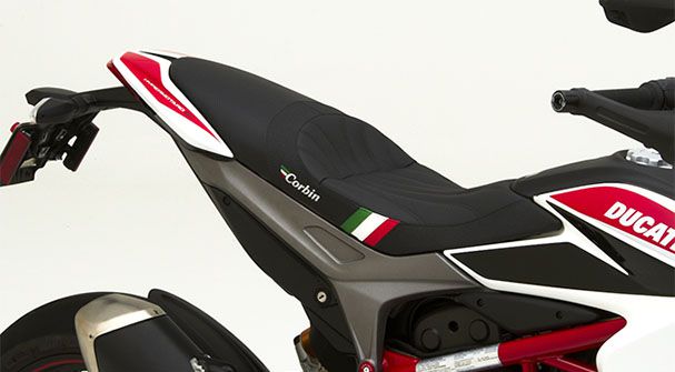 Comfort and style together in one package is what made the Corbin name famous worldwide. Delivering a quality product constructed of the finest materials available has made Corbin the number one manufacturer of motorcycle saddles for over forty years! Our Supermoto saddle for the Hypermotard is a perfect example of this combination of form and function.