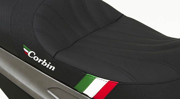On the outside we use genuine leather seating for a luxurious ride that breathes with your body. Leather will break in along with the foam to support the personalized fit. We’ve designed a cover pattern that allows you to keep a custom, yet subtle look or choose from a variety of colored material options at no extra charge for high visual impact. Shown here with Carbon-Fiber leather seating, Asphalt sides, Carbonium tail, Tri-Color Motosport emblem, Italian themed Corbin logo & tasteful stitch pattern (required).
