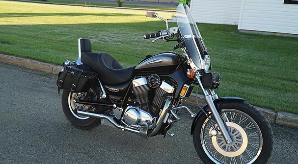 Gunfighter saddle features an extremely comfortable rider’s position combined with a fastback tail for sly look. Seating area has been sculpted to provide maximum body contact area. Touring quality comfort. Works with or without factory sissy bar. For super sly look, remove the sissy bar. (This will require spacers between the fender and fender struts.)