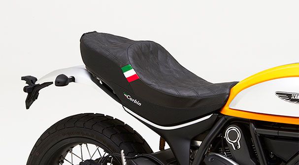 Gunfighter & Lady saddle installs similar to stock and integrates with the Ducati key lock system. Once you install the nose bracket near the tank, the Corbin saddle will slide into place nose first and latch down with the OEM key lock. Latch pin comes preinstalled on the Corbin saddle.