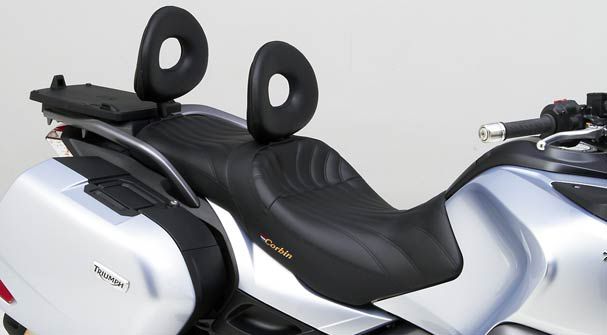 Corbin has taken the touring quality comfort to the next level with our ergonomic sculpting and wide supportive bucket shaping. Notice how the shape of the seat is lowest in the center which relives central pressure from your tailbone. This shape is contoured out to cradle your body and disperse weight over a greater area. This all adds up to comfort and support that will keep you in the saddle long enough to use up that large fuel tank!