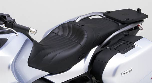 Saddle installs using the Triumph key lock system with brackets premounted on the saddle so it’s ready to go right out of the box. If you opt for electric heat, we also include a wiring pigtail that integrates with your Triumph fusebox. Complete instructions included.