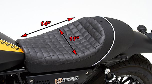 Our high density Comfort Cell foam allows a sleek, low profile while providing a firm supportive ride that lasts. Ergonomic shaping in the seating provides good ground reach, excellent back support and better weight dispersion for more time in the saddle. This also helps to eliminate the centralized pressure felt from the stock seat. In the nose area, we sculpt the saddle narrow to allow for good ground reach. Passenger area is designed for looks, but is padded and upholstered so it can take passengers for short trips.